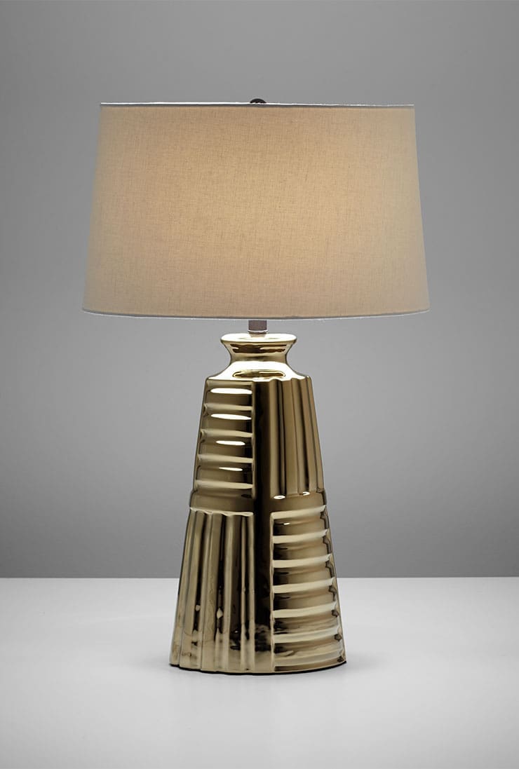 The Aaliyah Table Lamp is modern and edgy. Crafted of ceramic with copper finish and topped with a cream linen shade with a white satin lining, this table lamp is anything but boring. Named after the Grammy nominated R&B artist, Aaliyah, who was highly influential in her time. This contemporary table lamp is great for task lighting on a desk or by the bed. Use the Aaliyah Table Lamp in the living room, bedroom, keeping room, foyer or home office as fashion forward accent lighting.