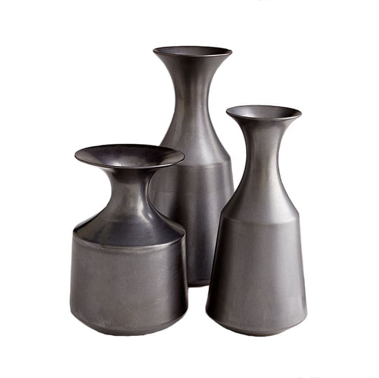 The Abracadabra Vase Collection is contemporary and modern. Crafted of heavy ceramic with a black metal finish, these vases offer a little bit of magic. Available in three sizes, these unique gourde shaped vases are sculptural objets d’art. Use each as a standalone accent, or group them together for an elegant collection. The Abracadabra Vase Collection is great for making a statement on a tabletop, and is a perfect gift for a discriminating host or hostess. Fill them with seasonal flowers or greenery, or use them purely as a decadent focal point. These modern vases are sure to bring luxe style to your defined decor. FINAL SALE.