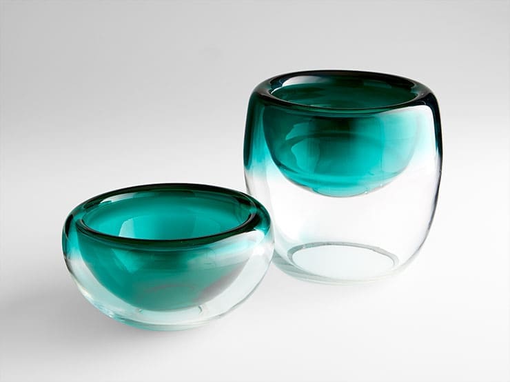 The Abyssal Bowl Collection is elegant and beautiful. Finely crafted of glass with blue and clear finishes, these bowls are simply charming. Available in two sizes, this wonderful bowl collection can be used as a standalone accent. Or group them together for a decadent collection. Fill them with seasonal flowers, greenery, or your favorite fillers. These modern bowls are sure to bring style to your defined decor. The Abyssal Bowl Collection is great for making a statement on a tabletop, and is a perfect gift for a discriminating host or hostess.