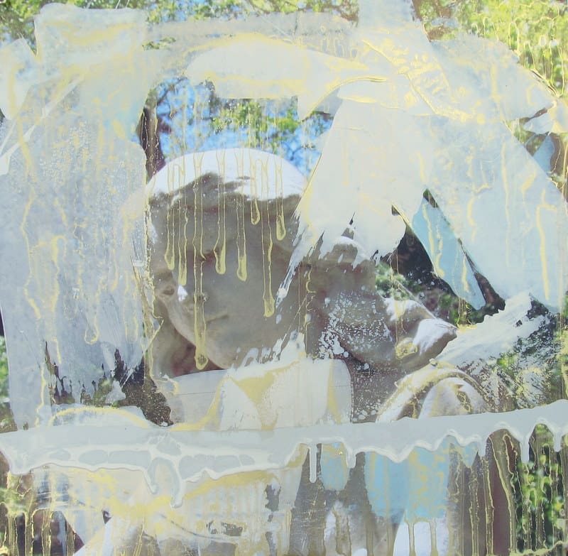 From his Angels Series, Austin Allen James brings us “Teenage Angel.” This watery abstract painting features washes creme and white, with touches of metallic to create an ethereal glow. This mixed media painting on paper photo is coated with a resin clear coat to preserve and enhance the complex layers of this one of a kind abstract. The glassy surface invites the viewer to experience the artwork through a “looking glass.” This homage of darkness and lightness can easily serve as the foundation of a well appointed roomscape. Choose the “Teenage Angel” style in the size of your choosing, with a 2″ depth. Each painting is made to order as a one of a kind commission; inherent variations make each piece it’s own unique treasure. Contact us for custom sizes, available at 1 dollar per square inch. Learn more about the artist in his feature as a Moss Manor 2014 Guest Curator.