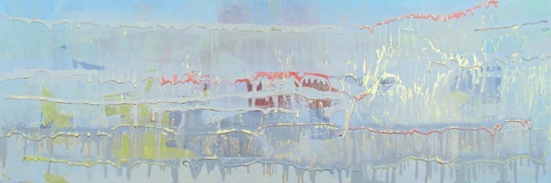 From his Austin Texas Series, Austin Allen James brings us “Lady Bird.” This flowing abstract painting features washes of aqua blue and grayish white, with touches of metallic to create an ethereal glow. Subtle layers of olive and red paint invite movement and lyricism to the piece, for which the artist is well known. This mixed media painting on board is coated with a resin clear coat to preserve and enhance the complex layers of this one of a kind abstract. The glassy surface invites the viewer to experience the artwork through a “looking glass.” This beautifully bold painting can easily serve as the foundation of a well appointed roomscape. Choose the “Lady Bird” style in the size of your choosing, with a 2″ depth. Each painting is made to order as a one of a kind commission; inherent variations make each piece it’s own unique treasure. Contact us for custom sizes, available at 1 dollar per square inch. Learn more about the artist in his feature as a Moss Manor 2014 Guest Curator.