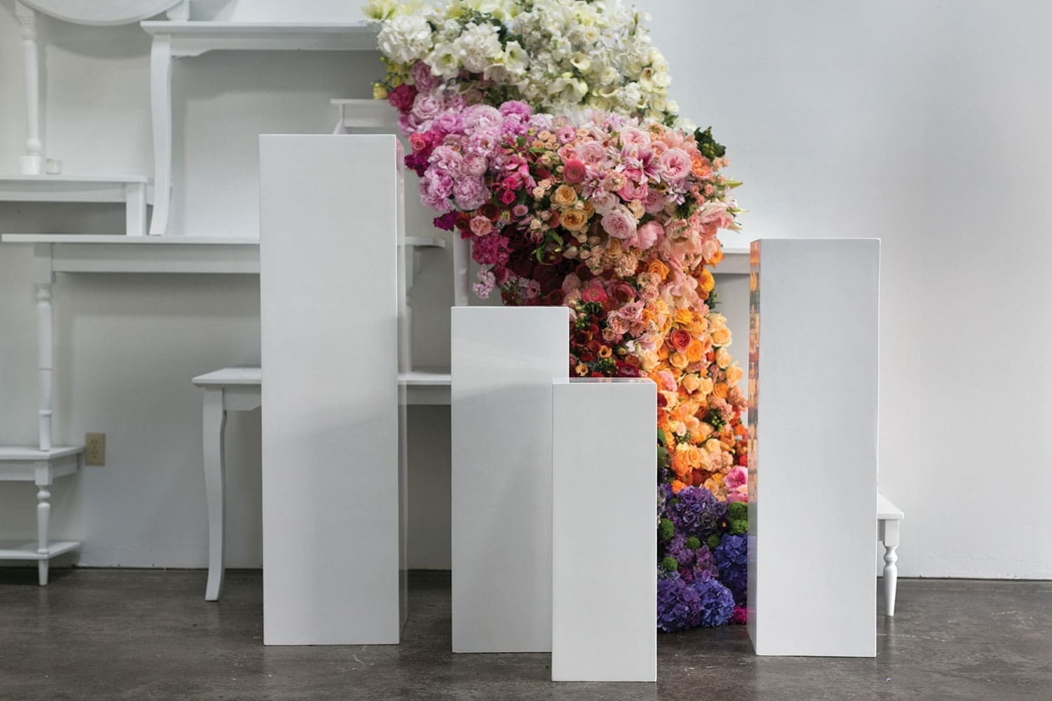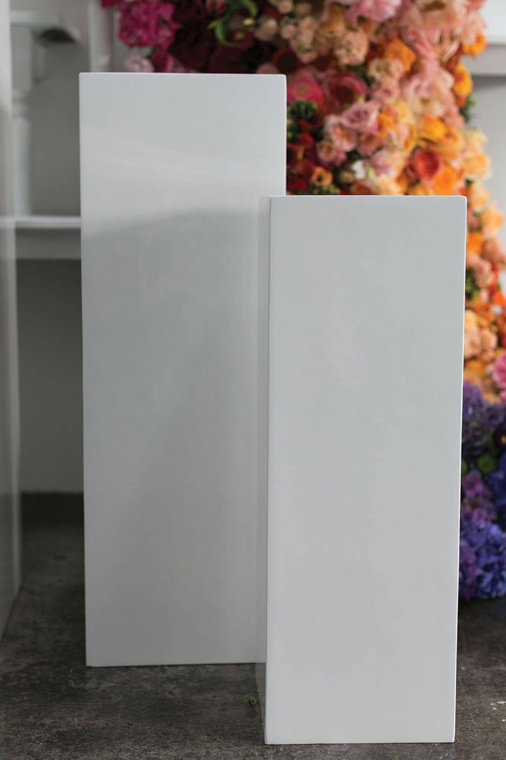 Say ‘Bonjour!’ to the classic white Blanc Column Collection. Available in four height options, these fiber composite white square columns are versatile and come in an ultra smooth white finish. Flank an entrance or fill a corner with floral-filled urns, live plants or dried botanicals. Or use solo or in multiples to display sculpture or artwork just like a professional gallery. These neutral modern white pedestals match any design and fit with every style. Use the Blanc white display stands in varying heights for a striking accent in your home or business. The Blanc Column Collection does not disappoint. Whether you wish to make a subtle statement or a huge impact, the Blanc White Columns bring height and visual interest wherever you choose to use them.