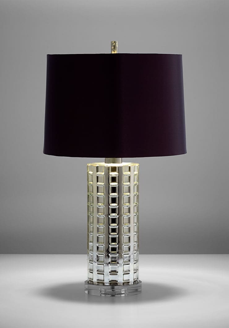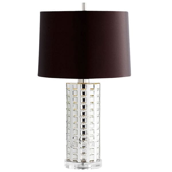 The Capella Table Lamp is dramatic and bold. Finely crafted of glass with a nickel finish, topped with a brown satin shade with gold foil lining. This table lamp showcases a textured design on its body, giving it a sophisticated and striking style. Use the Capella Table Lamp as accent lighting in your home or office. This statement lighting can be used in the living room, bedroom, keeping room, or foyer.