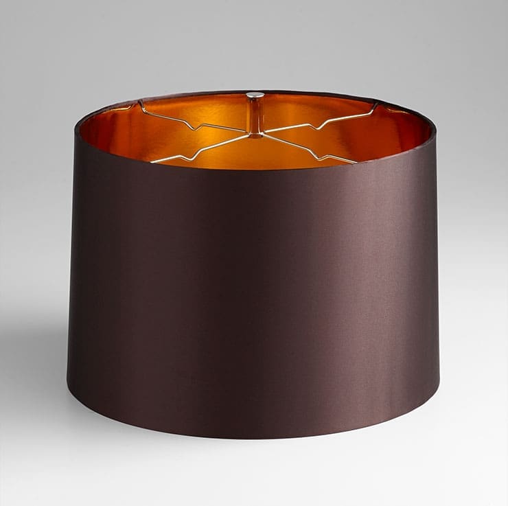 Materials: Glass Lamp with Nickel Finish and Brown Satin Shade withGold Foil Lining