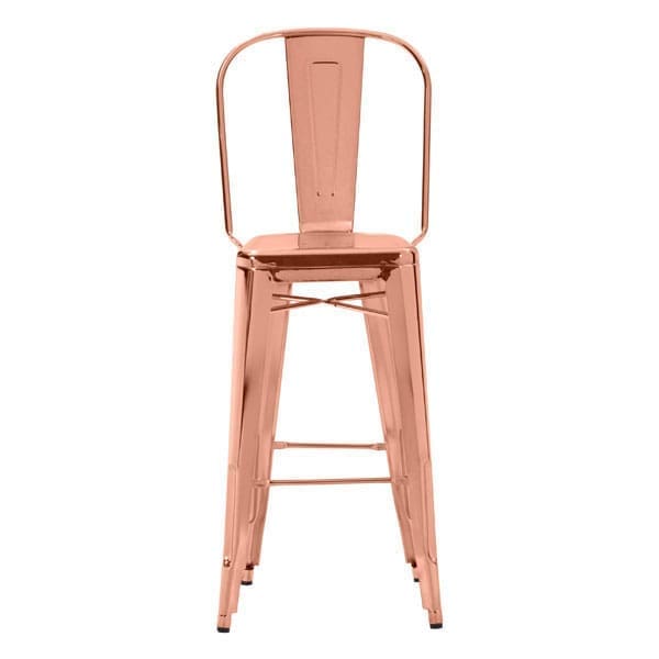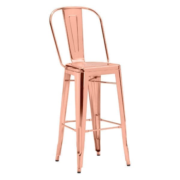 This Elio Bar Chair, reminiscent of old Parisian bistros, is a classic chair with a modern update. Finely crafted of steel, this durable bar chair comes in a metallic gold and rose gold option. The Elio Bar Chair is the perfect accent seating at your bar or counter table. Pair this seating with the Elio Dining Chair for a complete kitchen collection. Let the Elio Bar Stool work for you in your dining room, living room, bedroom, home office or keeping room.