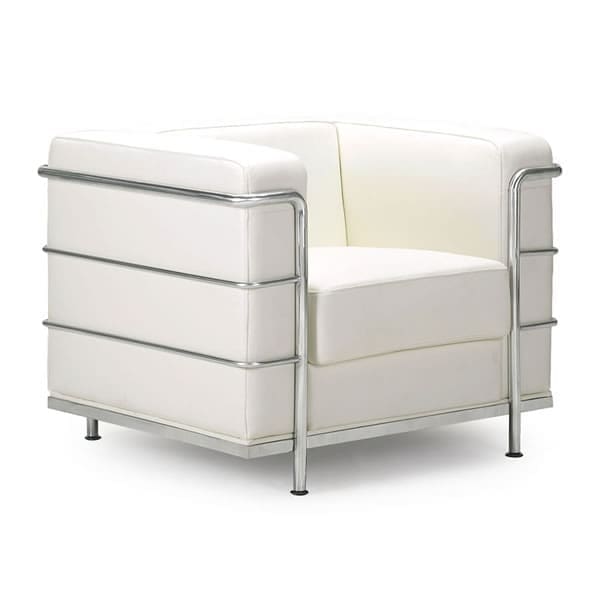 The Fortress Armchair is part of a mid-century classic series. The chrome steel tubes wrap around the leatherette back and side while the luxurious leather seat invites you to sit and stay a while. Available in black, white and espresso.