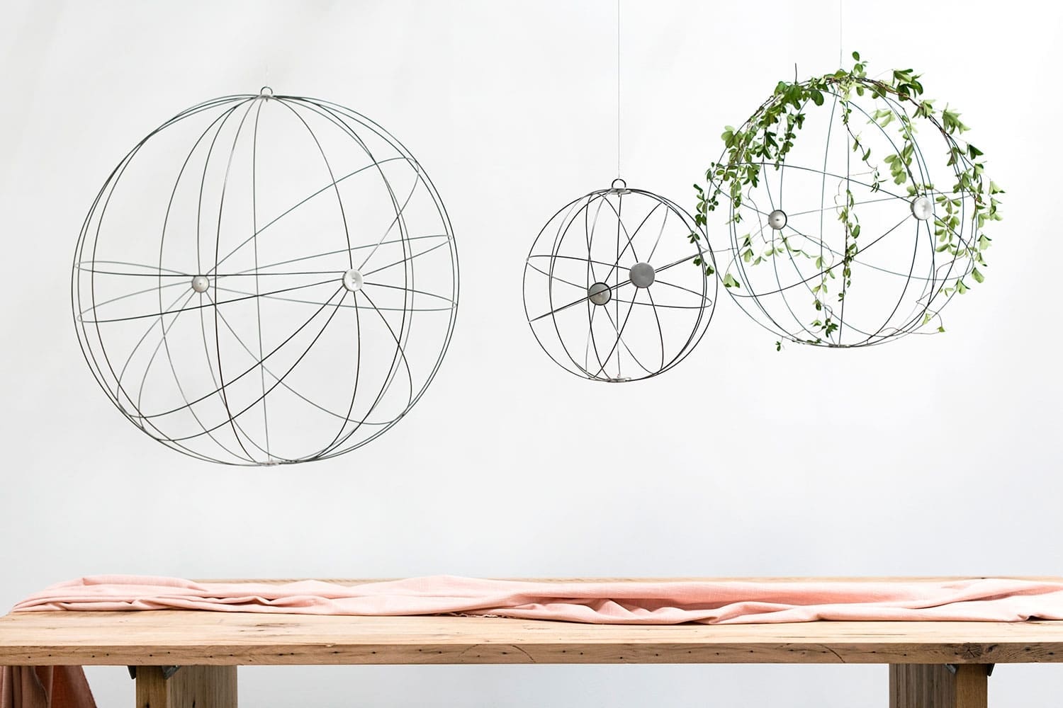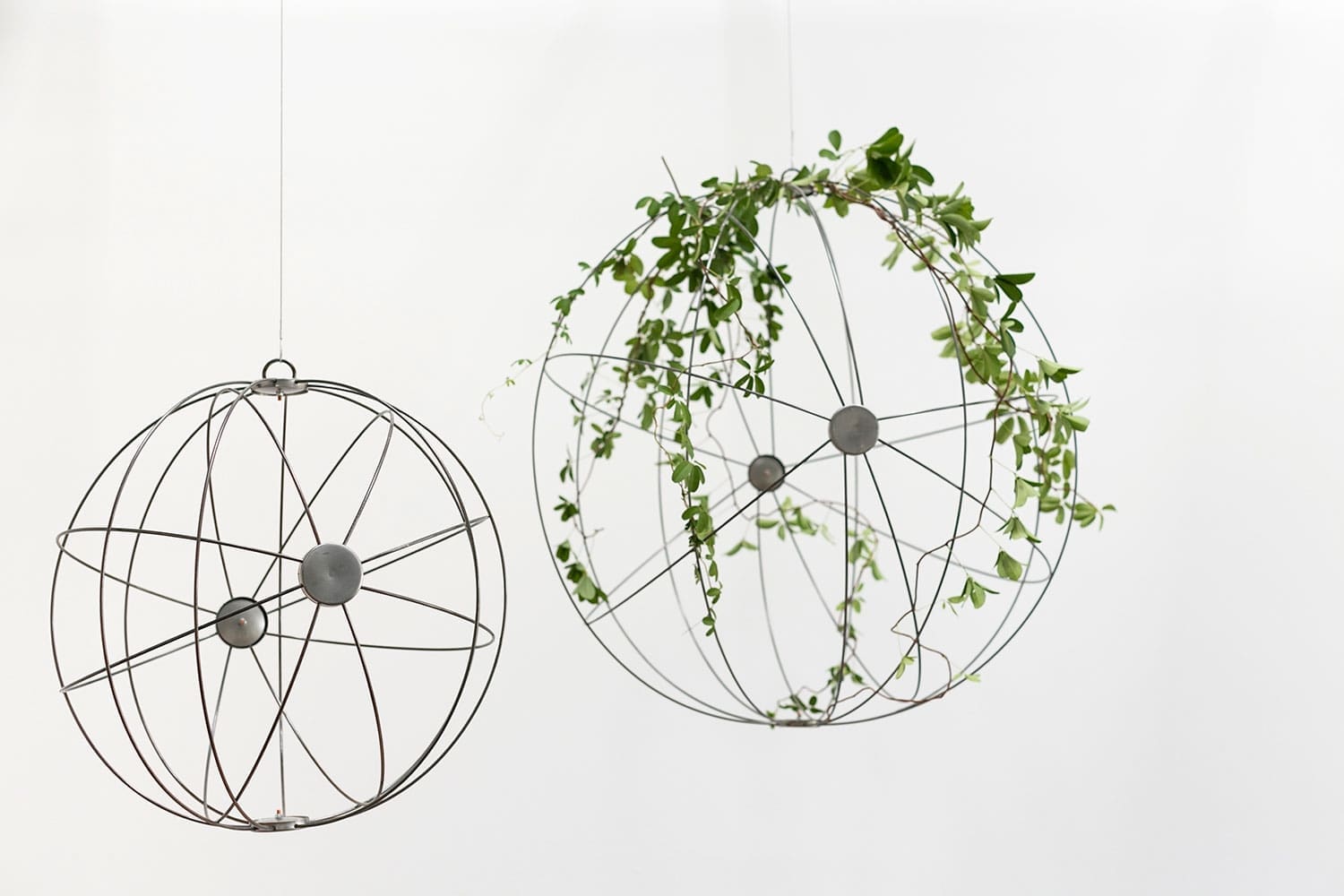 These classic Global Wire Spheres for the home and garden are eye catching as is or filled with plants for a stunning display. These traditional Wire Spheres are perfect for lining with moss and hanging together for a descending look in the garden. Available in three sizes, the small and medium Global Wire Spheres come as a set of two. The large Wire Sphere is substantial and airy and looks great alone or paired with varying sizes. Add depth and visual interest to your home and garden with these oversized Wire Spheres. These Global Wire Spheres have hooks for easy hanging. The open-weave construction of these Global Wire Spheres welcomes an endless planting of seasonal greens or an abundant display of fresh cuts.