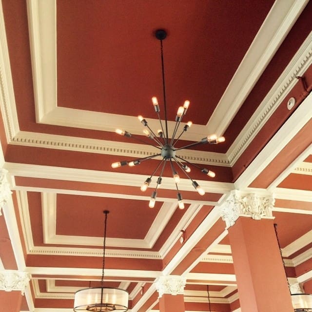 The Large Sapphire Light Fixture is a showstopper. The industrial design is a tribute to the mid-century space race. The long metal arms of the Large Sapphire Light Fixture suspend light in every direction. This contemporary light fixture would be an excellent choice for a foyer, living room, dining room or bedroom.  The twenty bulbs give off ample lighting for large spaces, yet still conserves energy with a 25 watt bulb. Install it with a dimmer switch for the ultimate ambience. For a smaller space, or to group multiple sizes, also consider the Small Sapphire Light Fixture. FINAL SALE.