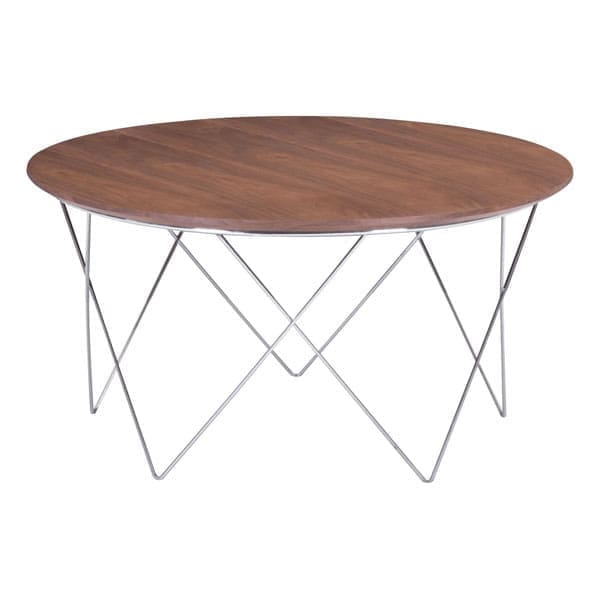 The Macho Coffee Table is as solid as the name suggests. It’s natural walnut wood veneer top and solid chromed steel base welcome feet to be propped up after a long day. The Macho Coffee Table’s unique table base offers strong geometric lines to your space, while maintaing an airy feel. The symmetry is complimented further by the smooth edges of it’s round table top. At almost three feet in diameter, this amply proportioned coffee table is an excellent foundation for your modern seating arrangement. The Macho Collection also features a side table.