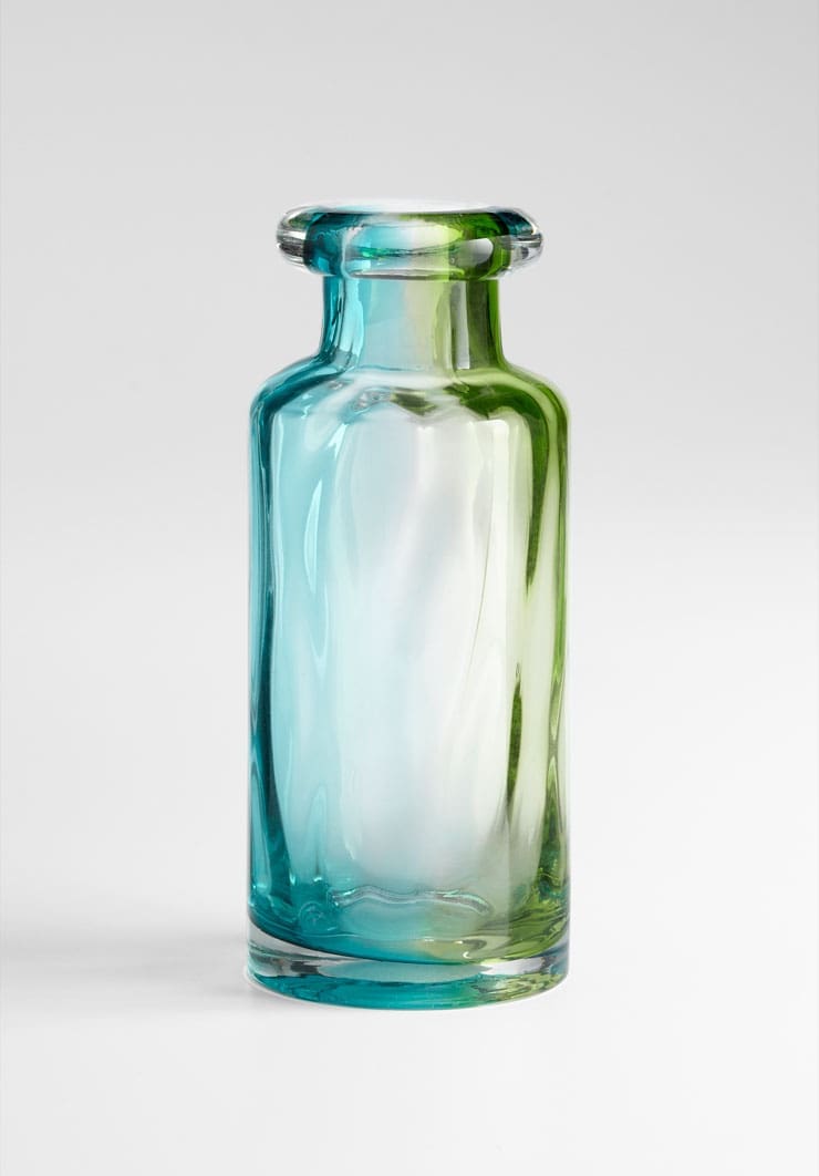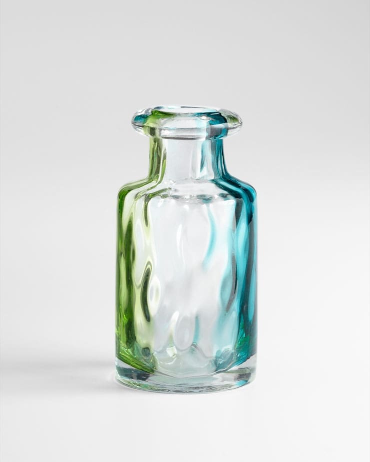 The Rigby Vase collection is modern and simplistic. Hand formed glass with green, blue, and clear finishes, these contemporary vases are multifaceted and iridescent works of art. Vintage bottle inspired, the Rigby Vase Collection is perfect for a contemporary tabletop setting. Group them together for an elegant display, or choose one for a simple statement piece. Fill them with seasonal flowers or greenery, or use them as a focal point in a centerpiece arrangement. Keep your favorite size and give the others as a gift to the discerning hostess. FINAL SALE.