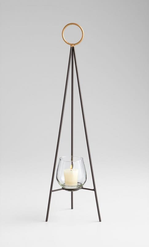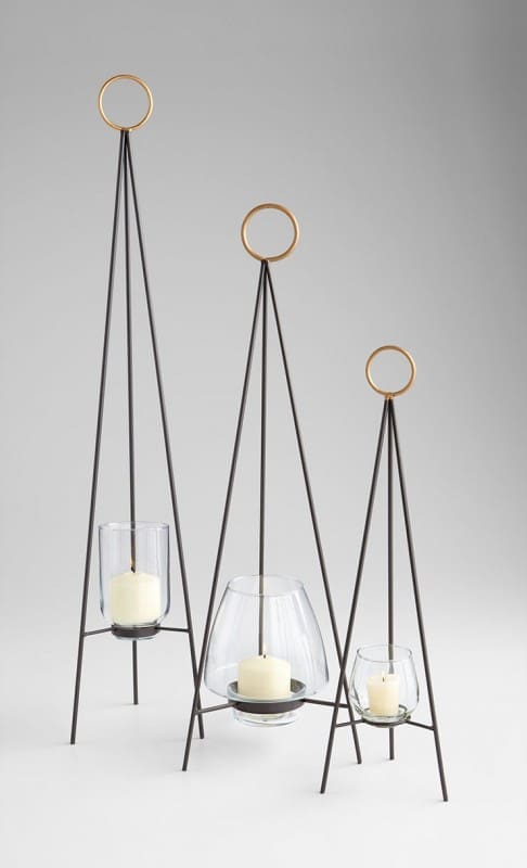 The Tripod Candle Holder is long on style with minimalist appeal. Finely crafted of iron with a smoky graphite finish and gold ring detail, this modern candleholder has a sturdy frame with a clear glass votive holder. Choose from three sizes for the perfect accent, or choose all three sizes for a distinct collection. Use year round as a stylish luminaire, or seasonally for modern holiday decor. The Tripod Candleholder is an excellent gift for the sophisticated hostess, or for your own elegant tabletop decor.