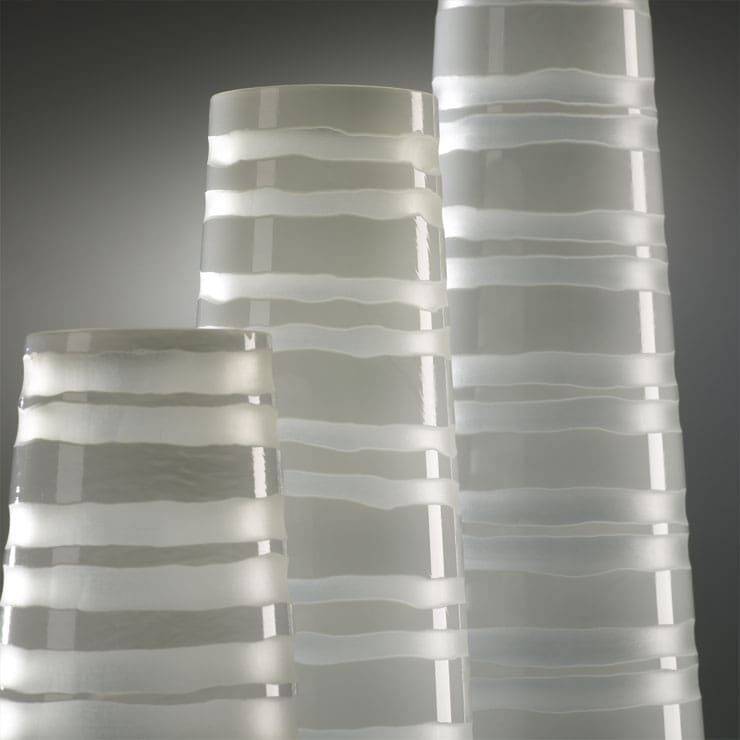 The White Matte Stripe Vase Collection is charmingly dramatic with a vintage flare. Crafted of glass with a white matte finish, these modern vases have the perfect mix of masculine and feminine touches. The White Matte Stripe Vase Collection has a simple cylinder shape with stripes of white adorning each vase. Choose one for an exceptional accent piece, or group them together for a classic collection. Fill them with seasonal flowers or greenery, or use them as a focal point in a centerpiece arrangement.